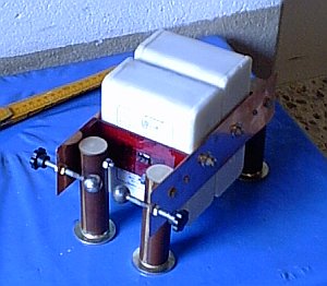 Here you can see the base with the finished primary coil. The copper ribbon is 6cm wide and offers nearly eight turns for tapping.